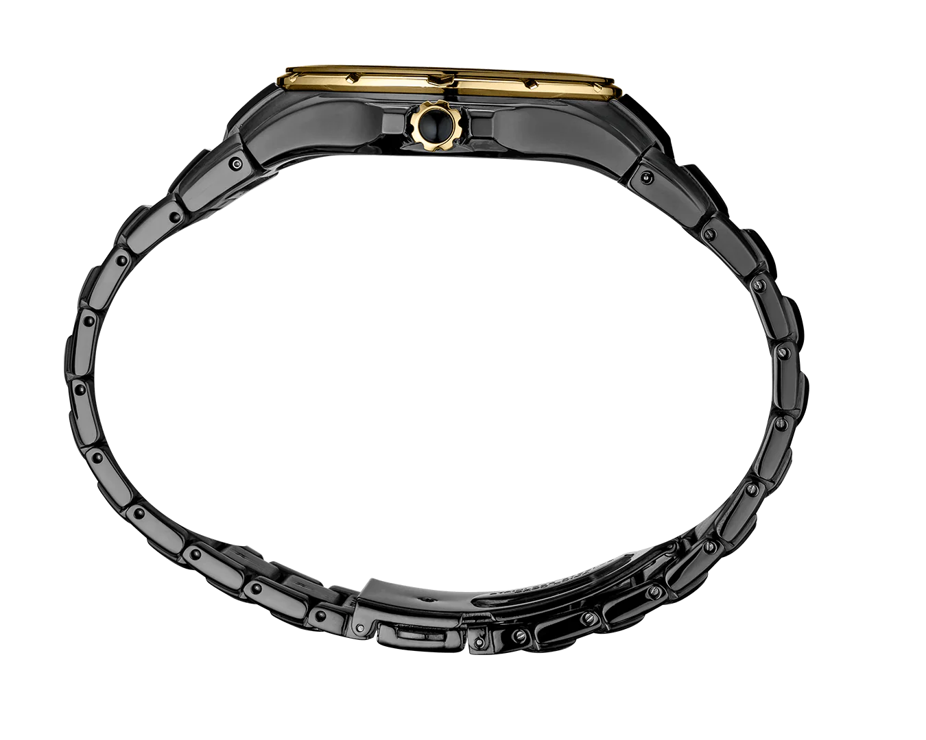 This is a great timepiece. It is Elegant and just the right amount of flash. The subtle accent of gold stands out beautifully against the black. The fit is perfect, I removed a few links.