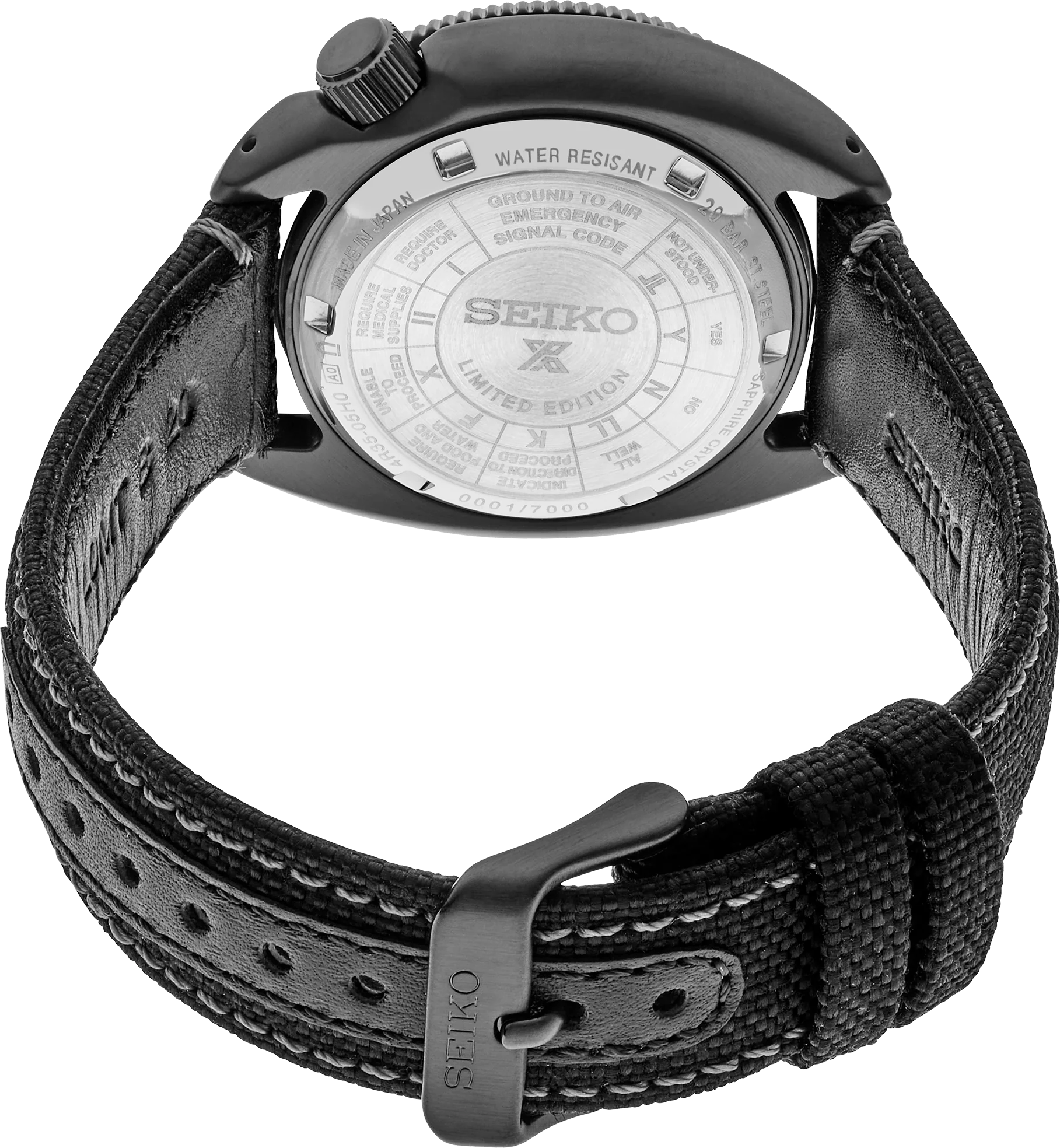 Seiko 5 Sports Collection. Inspired by the vintage designs worn by early pilots, SRPH99  this updated classic offers genuine style with both durability and all-day versatility. Providing automatic technology that you control with every movement, this distinctive watch is powered by a 24-jewel movement that beats at a frequency of 21,600 vibrations per hour, with a power reserve of approximately 41 hours and manual winding capability. With a 60-minute track marked in five-minute increments, the green dial features a day/date calendar, and luminous hands and markers. The orange-tipped second hand provides bright punctuation, intensified by the matching orange liner of the green nylon strap. Crafted of stainless steel with a screwdown see-through caseback for a view of classic timekeeping in action. 10 bar, 100M Water Resistant