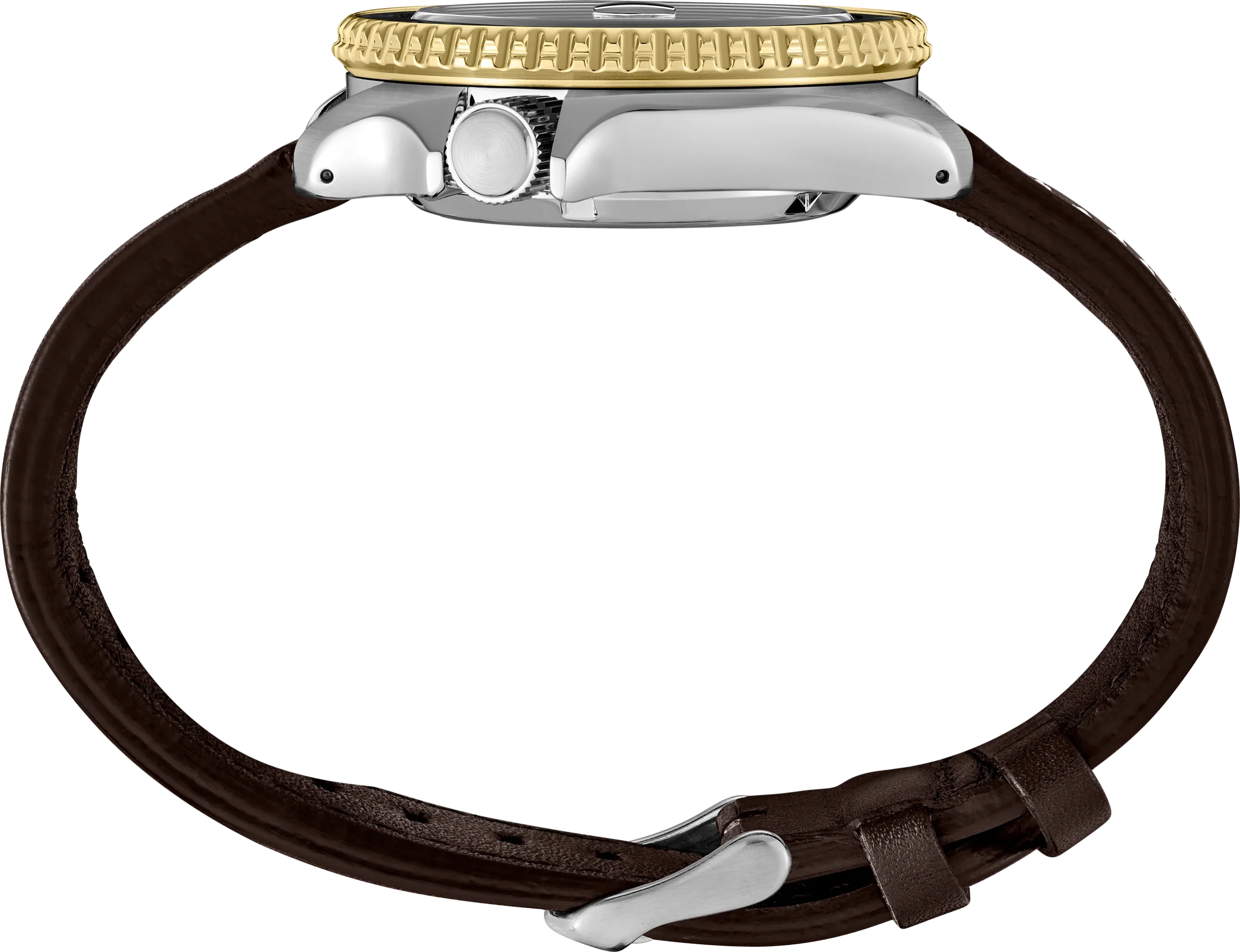 • Sleek black and dark brown bi-color 24-hour GMT bezel